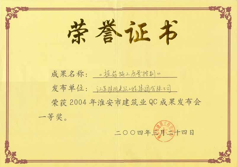 2004年市级QC植筋施工质量控制(一等奖)