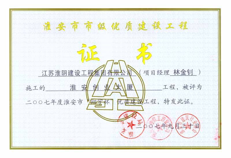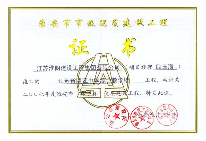 2007年市翔宇杯淮安市高级职业技术学校教学楼(开发区)-纪