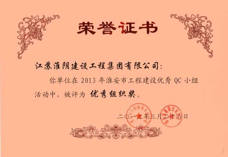 2013年市工程建设优秀QC优秀组织奖