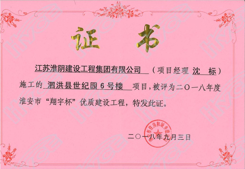 淮安市翔宇杯优质建设工程-泗洪县世纪园6号楼