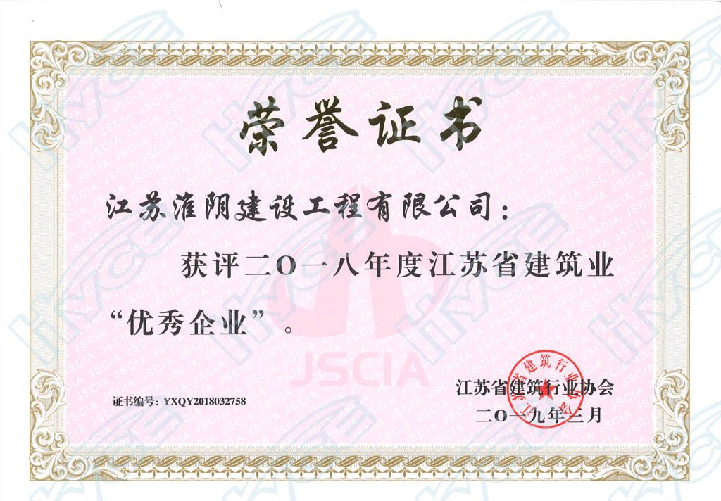 2018年度江苏省建筑业优秀企业
