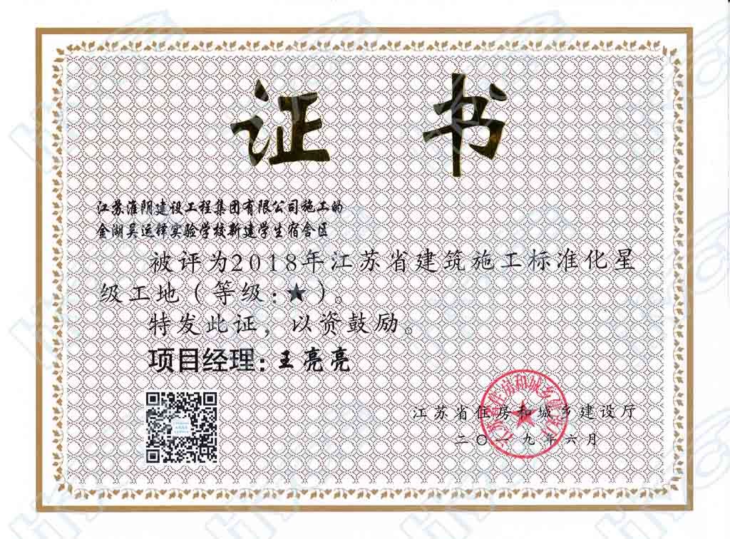 2018年度江苏省建筑施工标准化★星级工地-华谊星河