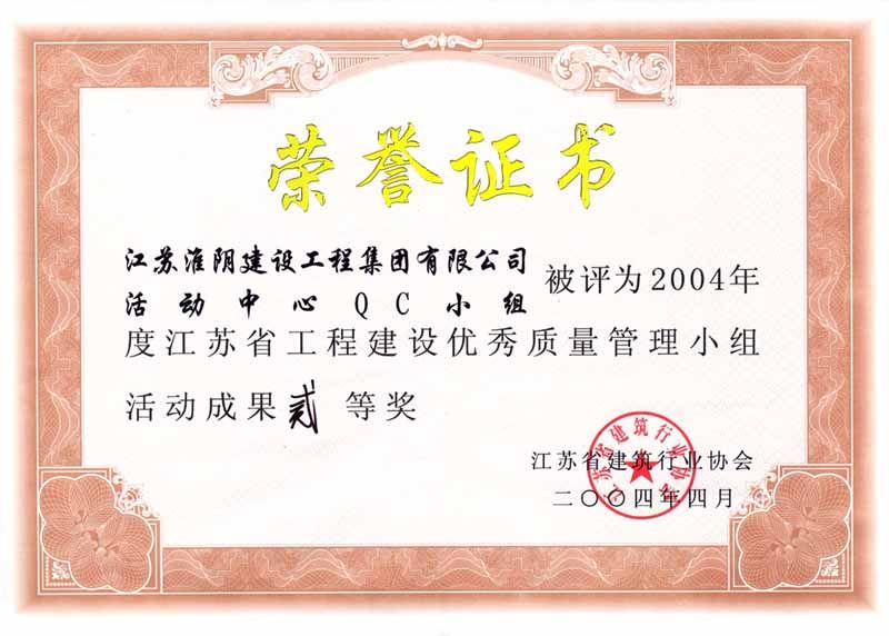 2004年市级QC老干部活动中心装饰QC小组(优秀质量管理小组