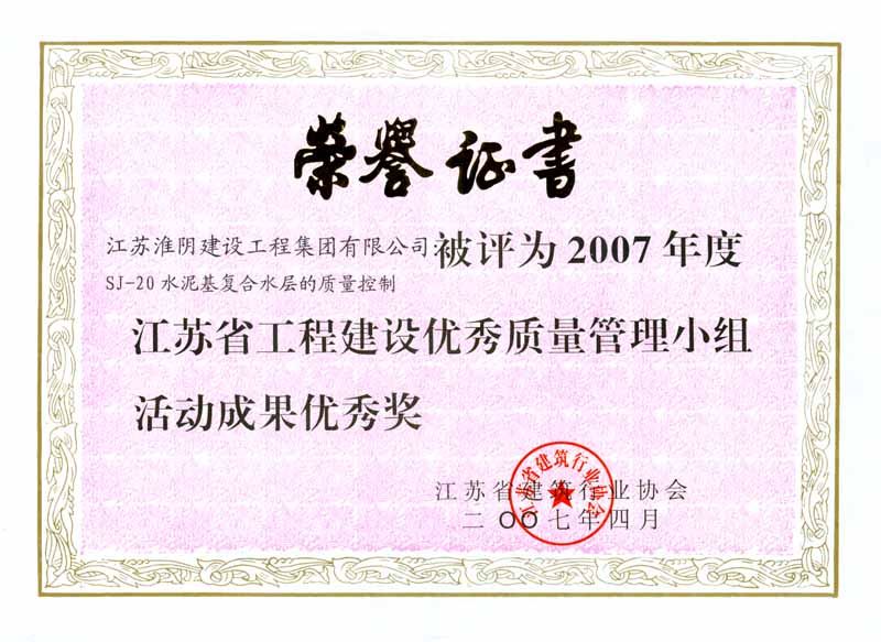 2007年省工程建设优秀质量管理小组活动成果优秀奖-SJ-20