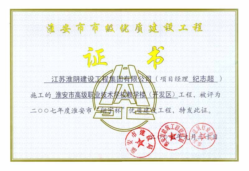 2007年市翔宇杯淮安市高级职业技术学校教学楼(开发区)-纪
