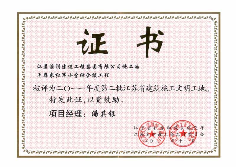 2011年省建筑文明工地红军小学-潘其银