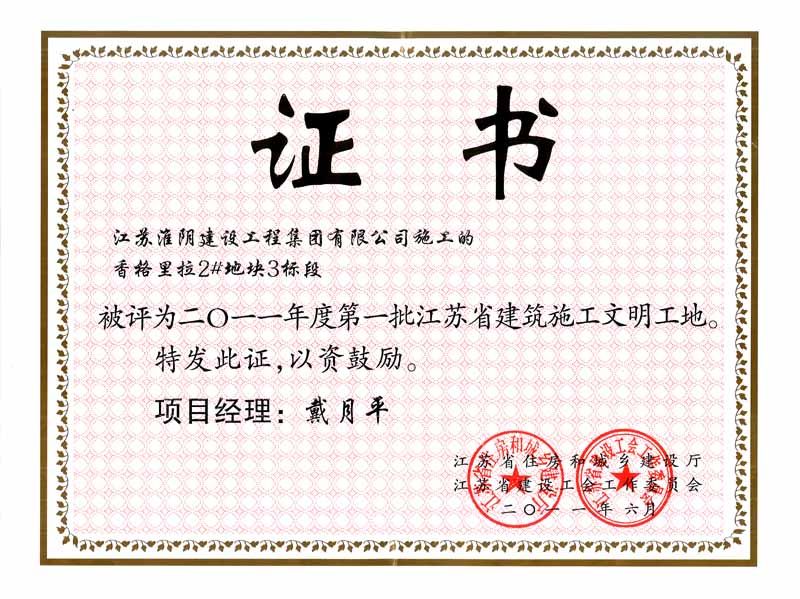 2011年省建筑文明工地香格里拉-戴月平