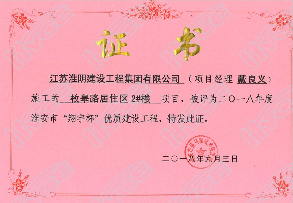 淮安市翔宇杯优质建设工程-枚皋路居住区2#楼