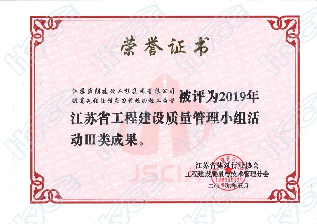 江苏省工程建设质量管理小组活动Ⅲ类成果