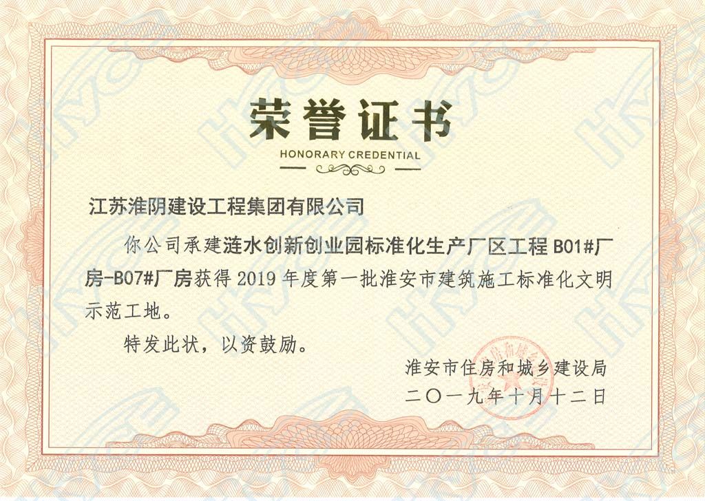 淮安市建设施工标准化文明示范工地-涟水创业园